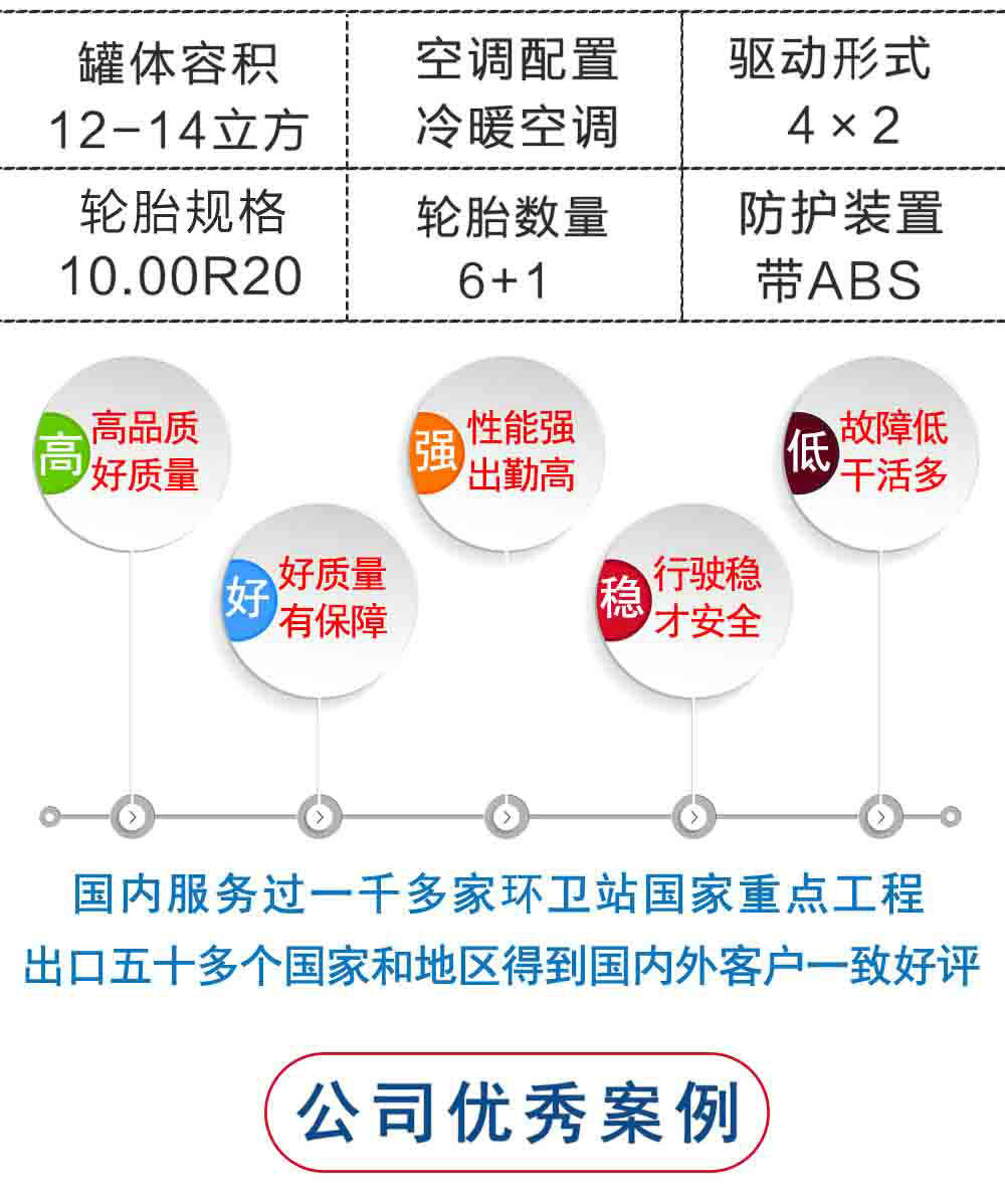 | 其他 | 1.運(yùn)輸介質(zhì):水,密度:1000千克/立方米,罐體有效容積:11.02立方米.2.帶后操作平臺(tái)時(shí),整車長(zhǎng)度/前懸/后懸/軸距/罐體外形尺寸(長(zhǎng)×長(zhǎng)軸×短軸)的對(duì)應(yīng)關(guān)系為(mm):8845,8645/1445/2700/4700,4500/4800×2300×1460 3.選裝不帶后操作平臺(tái)時(shí),整車長(zhǎng)度/前懸/后懸/軸距/罐體外形尺寸(長(zhǎng)×長(zhǎng)軸×短軸)的對(duì)應(yīng)關(guān)系為(mm):8245,8045/1445/2100/4700,4500/4600×2300×1500.4.側(cè)防護(hù)及后下部防護(hù)裝置均采用Q235A材質(zhì) | ||