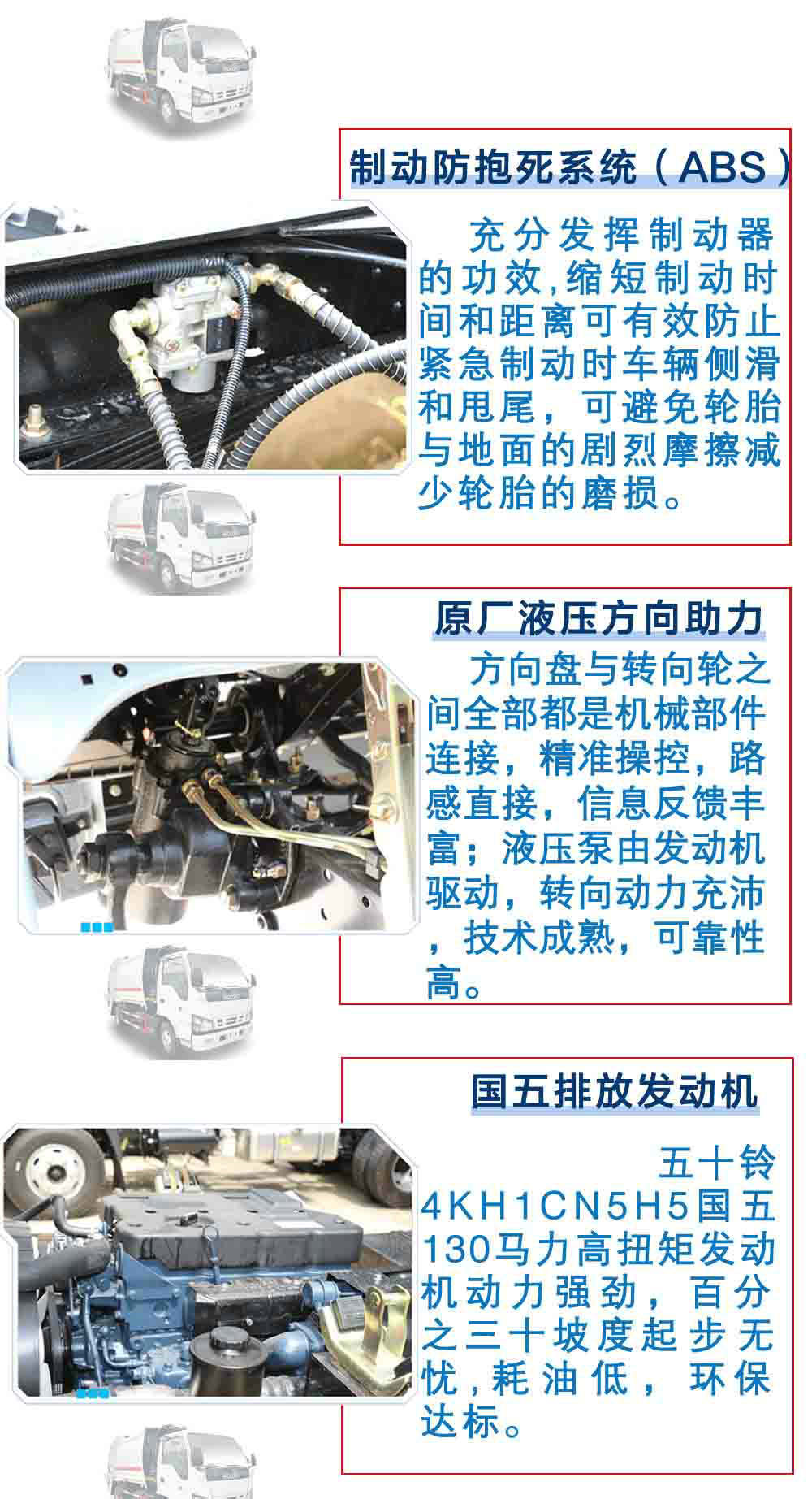 | 其他 | 可選裝矩形或弧形車廂,選裝后部翻轉(zhuǎn)裝置;選裝無上料裝置時(shí)長6220mm;選裝翻桶及帶后擺臂裝置時(shí)長6520mm,后伸300mm;選裝翻斗裝置時(shí)長6670,后伸450mm.側(cè)防護(hù)采用Q235材質(zhì)焊接連接,后防護(hù)與車輛結(jié)構(gòu)為一體,后部離地高度420mm.ABS及其控制器型號(hào)為:APG3550500A4,生產(chǎn)廠家為:浙江亞太機(jī)電股份有限公司; 發(fā)動(dòng)機(jī)4KH1CN5HS和4KH1-TCG51對(duì)應(yīng)油耗值為15.3 L/100km和15.3L/100km. | ||