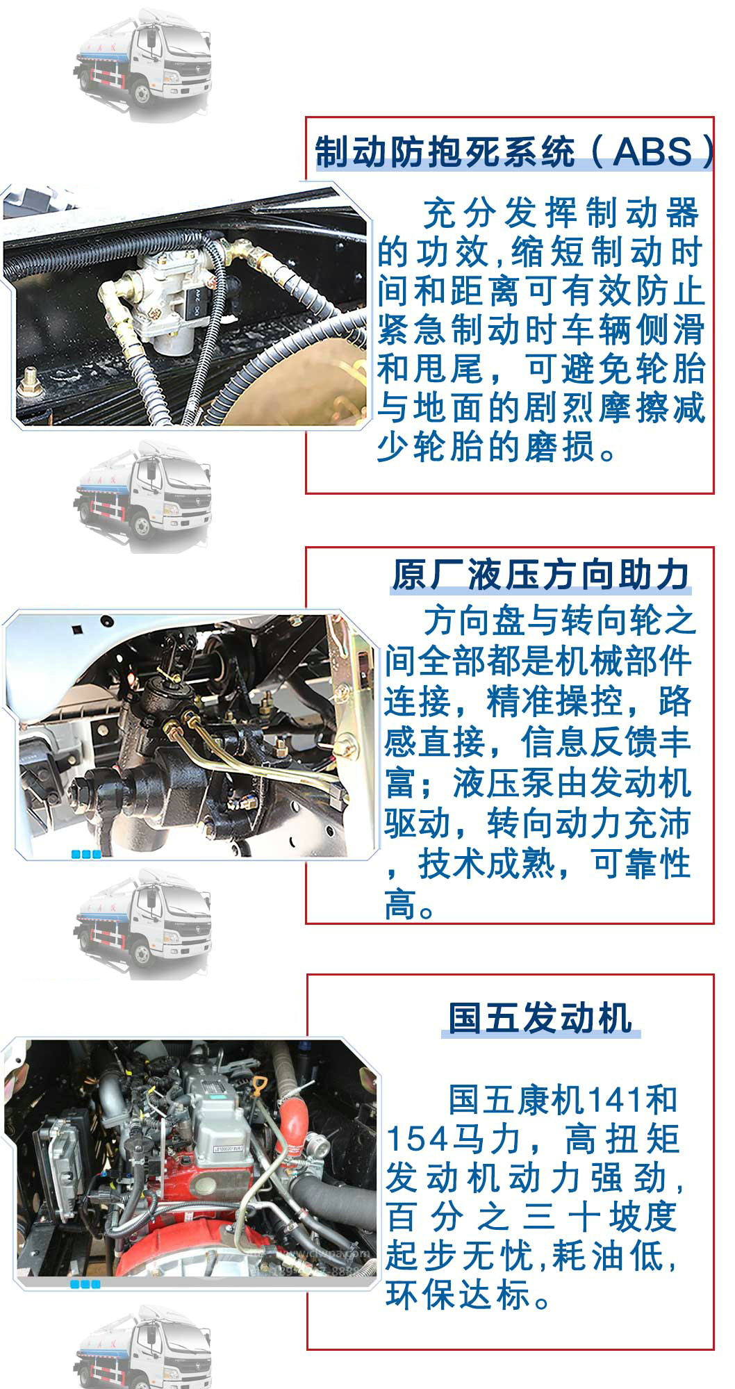 | 其他 | 1、罐體有效容積5.2立方米,運(yùn)輸介質(zhì):液態(tài)污物,密度800千克/每立方米,軸距(mm)/罐體外形尺寸(長×長軸×短軸)(mm)的對應(yīng)關(guān)系為:3360/3700×1700×1200,3800/4150×1600×1150;2、側(cè)防護(hù)及后下部防護(hù)裝置均采用Q235A材質(zhì),均采用焊接連接, 后部防護(hù)斷面尺寸(mm):300×50,后部防護(hù)離地高度(mm):450。3、ABS廠家:威伯科汽車控制系統(tǒng)(中國)有限公司,型號(hào):44600XXXX0。4、文字噴圖位置、車輛顏色及局部細(xì)節(jié)可變化。5、隨底盤選裝駕駛室。 | ||