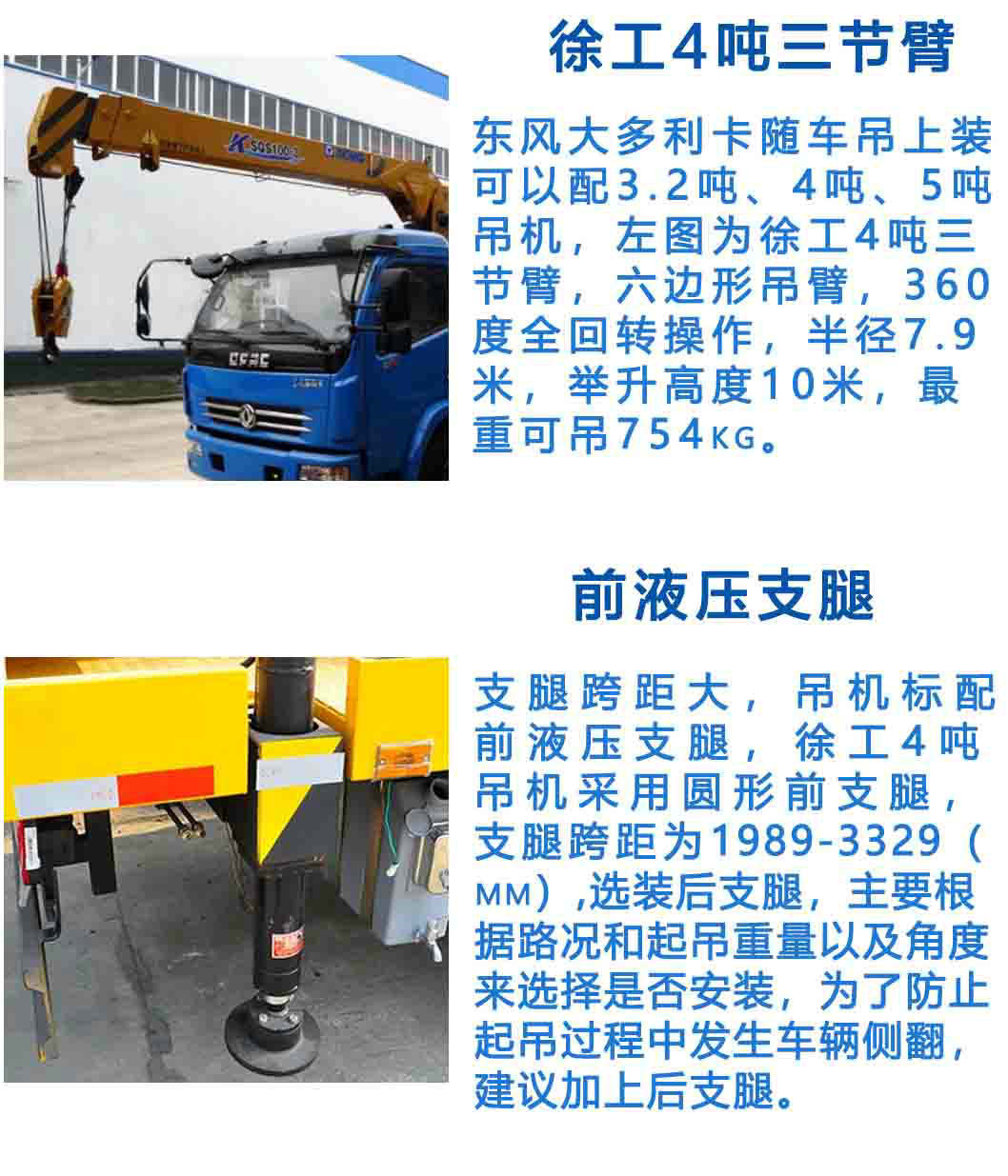 采用新型H型支腿,各支腿可單獨調(diào)節(jié)以調(diào)整車架水平,支腿跨距大,整機穩(wěn)定性好。隨車吊機可選擇直臂或折臂,吊機品牌可選擇徐工、三一帕爾菲格、石煤、長興、程力、新飛工等。有2噸、3.2噸、4噸、5噸、6.3噸、8噸、10噸、12噸、16噸、18噸吊機可選擇,可選用2節(jié)臂或3節(jié)臂或4節(jié)臂,廣泛運用于各種裝卸、安裝起重作業(yè),尤其適用于野外起重、救險作業(yè)和車站、港口、倉庫、建筑工地、礦山等狹窄場所作業(yè)。