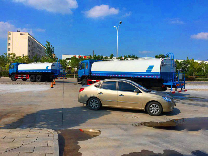 東風(fēng)后雙橋?yàn)⑺嚥捎脰|風(fēng)原裝底盤,康明斯210馬力發(fā)動(dòng)機(jī),11.00R20鋼絲胎,駕駛室?guī)ХD(zhuǎn),帶原廠ABS。罐體采用武鋼優(yōu)質(zhì)碳鋼板制成,有效容積為18方。我公司生產(chǎn)的灑水車采用新型制造工藝,改變傳統(tǒng)工藝,所有部件先油漆,后總裝。做最大限度采用螺栓連接,雨后不流黃水,維修簡(jiǎn)單方便。該灑水車專用功能為:前沖后灑,帶側(cè)噴,帶高位花灑,罐體后帶工作平臺(tái),平臺(tái)上安裝綠化灑水高炮,并有多種雨?duì)羁烧{(diào)節(jié)(大雨、中雨、毛毛雨、霧狀),配備全國(guó)質(zhì)量評(píng)比第一名的威龍灑水泵,帶自流閥,帶消防接頭,帶過(guò)濾裝置。