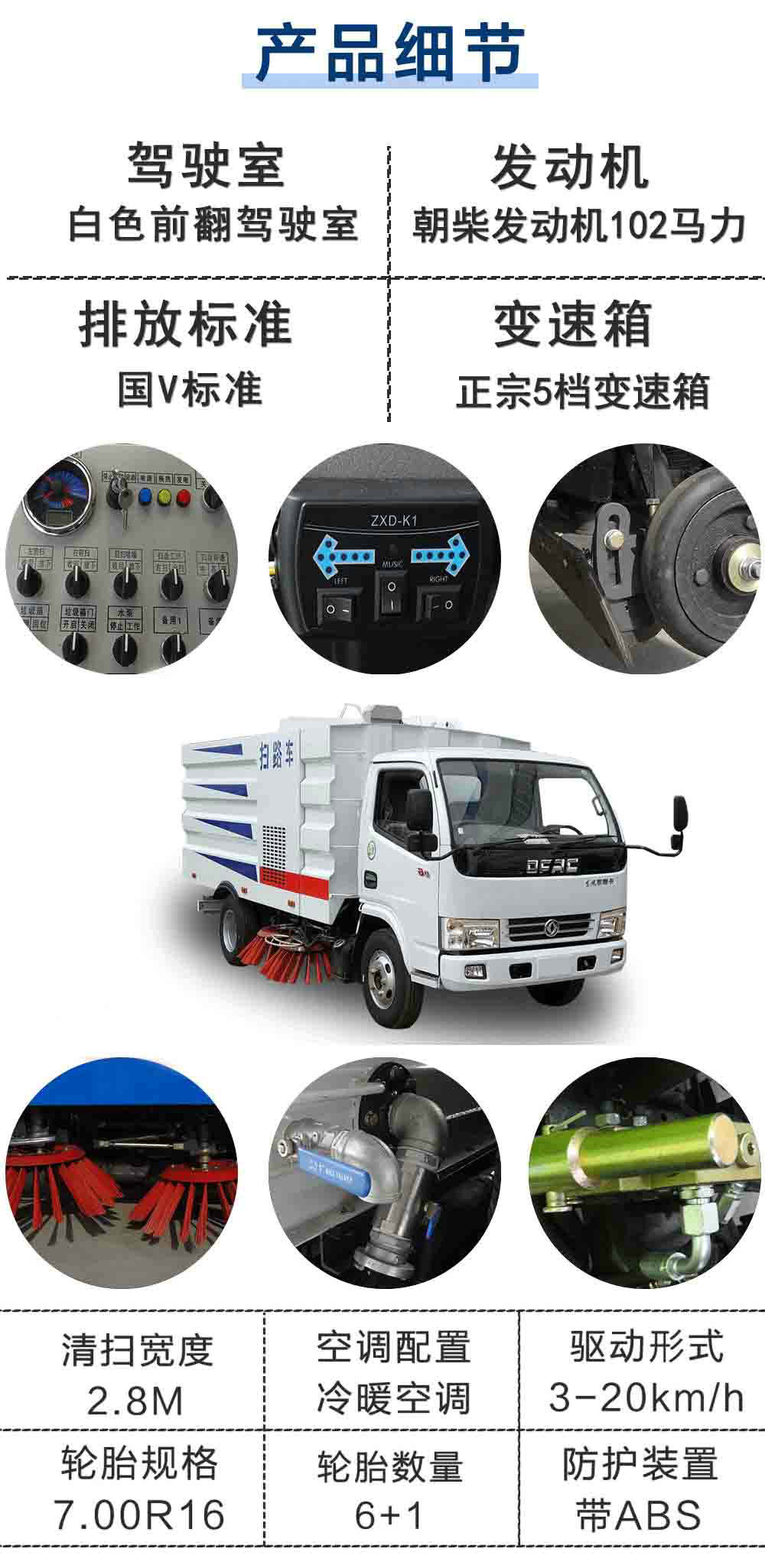 | 其他 | 1、防護材料:Q235A碳鋼,連接方式:左右側(cè)面防護裝置與專用裝置相干涉故可豁免;后下部防護裝置與大梁螺栓連接,后部防護斷面尺寸(mm):100×50,后部防護離地高度(mm):380。2、ABS廠家及型號:襄陽東風隆誠機械有限責任公司/ABS/ASR-24V-4S/4M。3、隨底盤選裝前面罩以及前霧燈; 選裝吸塵盒和單個掃地刷裝置,上裝選裝新型外形樣式。4,文字噴涂位置和車輛顏色可變化。5、整車長/軸距/后懸的對應(yīng)關(guān)系(mm)為:6200/3308/1852,5950/3308/1602。 | ||