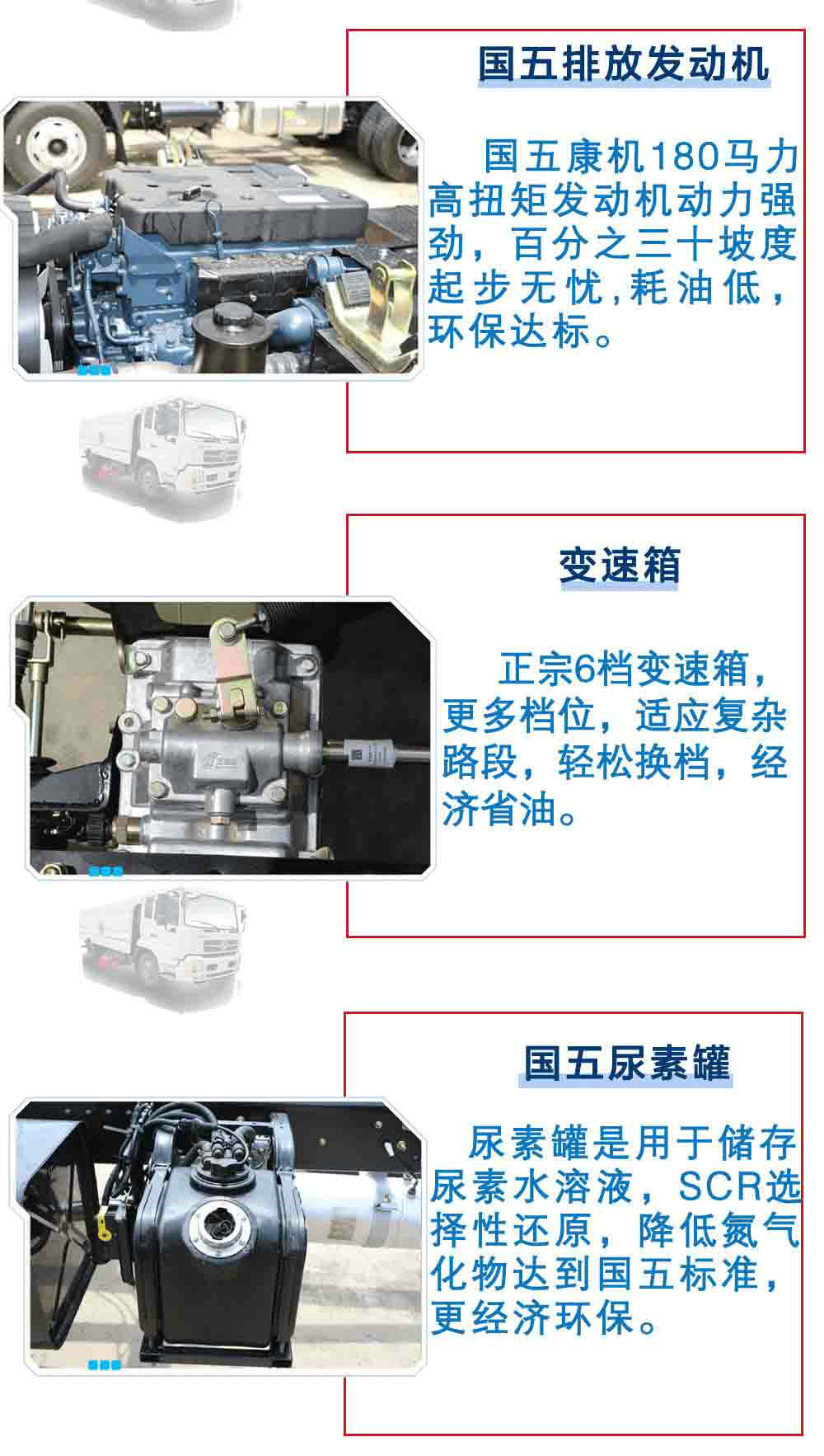 | 其他 | 1,整車(chē)長(zhǎng)度與軸距/后懸對(duì)應(yīng)關(guān)系為(mm):7930/4700/1800,7930/4500/2000,7630/4200/2000。2,防護(hù)材料:Q235A碳鋼,連接方式:左右側(cè)面防護(hù)豁免,后下部防護(hù)與副梁采用螺栓連接,后部防護(hù)斷面尺寸(mm):50×100,后部防護(hù)離地高度(mm):450。3,ABS型號(hào):4460046440;生產(chǎn)廠:威伯科汽車(chē)控制系統(tǒng)(中國(guó))有限公司;ABS型號(hào)3631010-C2000,生產(chǎn)廠:東科克諾爾商用車(chē)制動(dòng)系統(tǒng)(十堰)有限公司。該車(chē)安裝具有衛(wèi)星定位功能的行駛記錄儀。4,文字噴涂位置和車(chē)輛顏色可變化。5,選裝吸塵盒和單個(gè)掃地刷裝置及側(cè)面和后部外形。 | ||