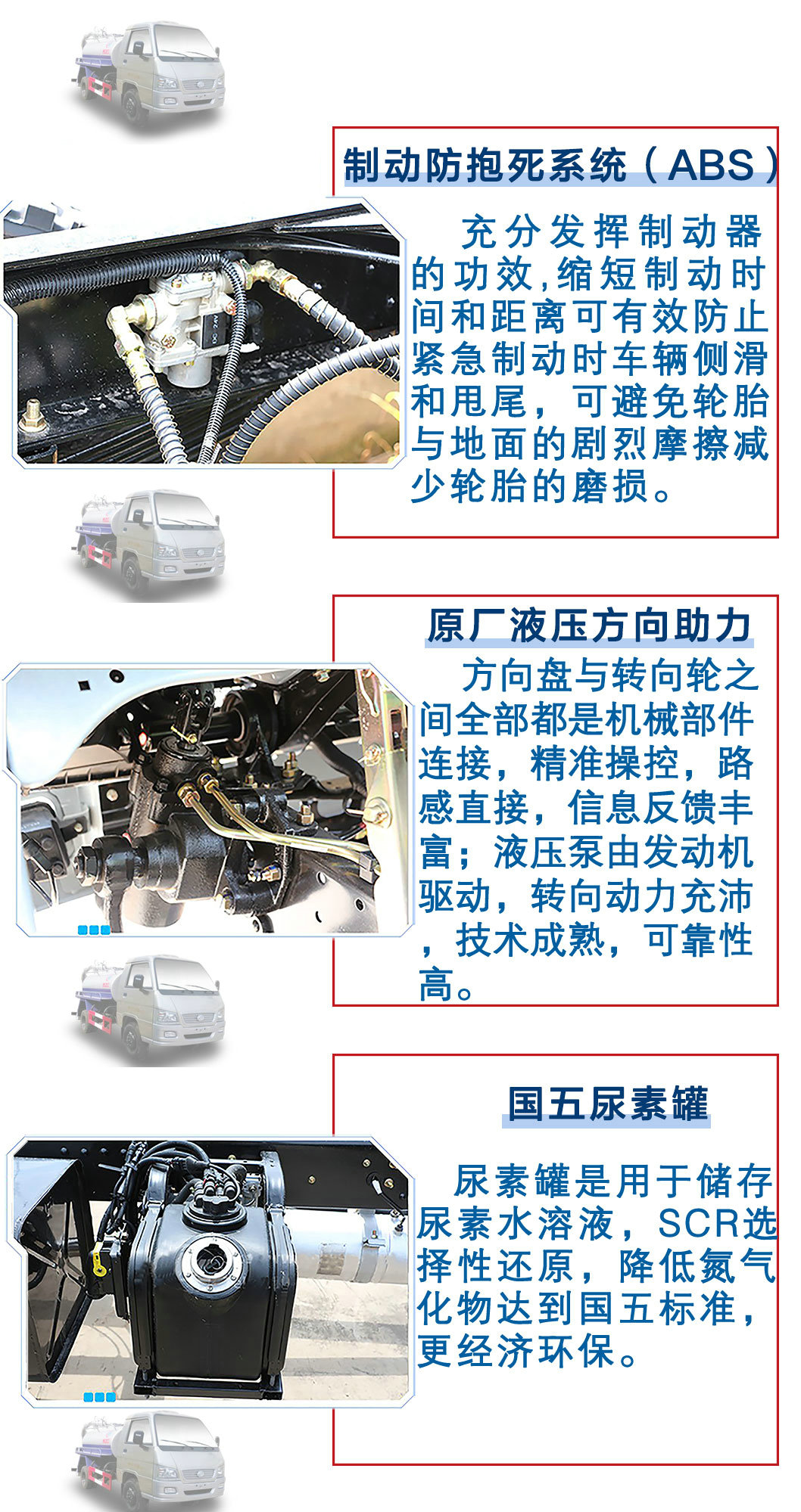 | 其他 | 1,介質:液態(tài)污物和糞便,密度:800千克/立方米,罐體有效容積:2.07立方米,罐體外形尺寸(長×長軸×短軸)(mm): 2600×1300×900。2,防護材料:Q235A,連接方式:側防護與副梁焊接連接,后防護與車架焊接連接,后部防護斷面尺寸(mm):200×50,后部防護離地高度(mm):500。3,ABS系統(tǒng)控制器型號:YF8,ABS系統(tǒng)控制器生產企業(yè):武漢元豐汽車電控系統(tǒng)有限公司。4,車輛顏色,文字噴涂及局部細節(jié)可變化。 | ||